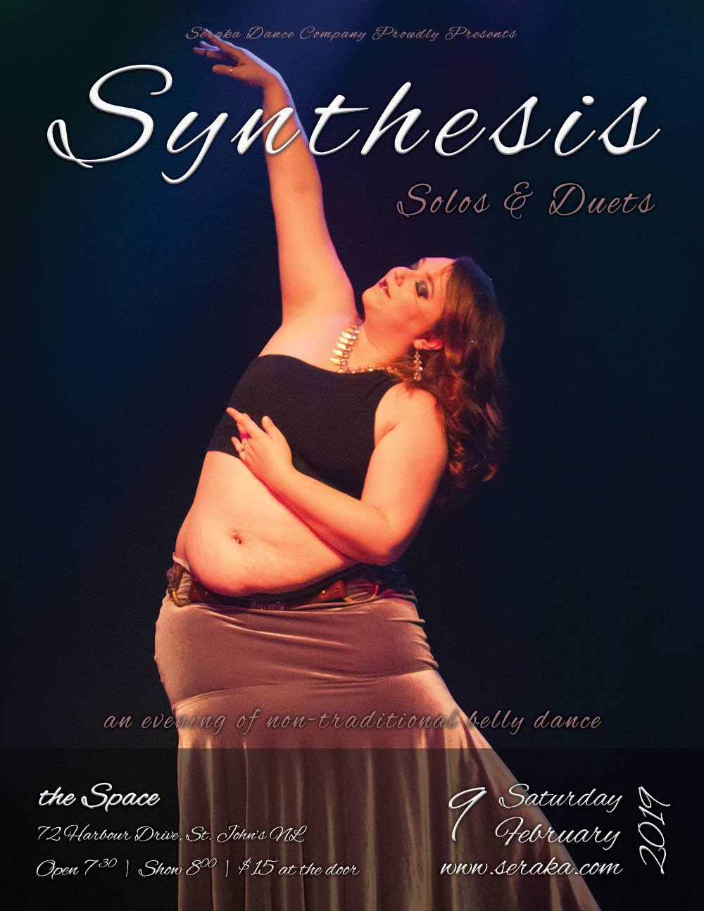 Seraka Dance Company is thrilled to present Synthesis: Solos & Duets, now in its 7th year! This show invites local dancers of all levels and styles to come together and express their passion for the art of belly dance. In this year’s unthemed production, dancers will have carte blanche to perform a piece that interprets the genre in a way that is meaningful to them. As a result this year’s lineup could include anything from folkloric or traditional-inspired dance, to tribal and contemporary fusion; gothic, flamboyant, melancholic, or whimsical.